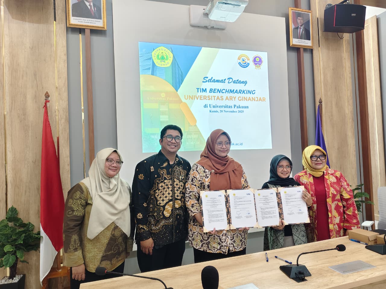 Bogor, 20 November 2025 — Universitas Ary Ginanjar (UAG) melaksanakan kegiatan benchmarking ke Universitas Pakuan (Unpak) Bogor sebagai bagian dari upaya peningkatan mutu dan percepatan akreditasi menuju predikat Unggul. Kunjungan ini disambut hangat oleh jajaran pimpinan Unpak, termasuk Wakil Rektor 1, Ketua LPPM, Ketua LPM, serta para Kaprodi Ilmu Komputer, Sistem Informasi, Ilmu Komunikasi, dan Sastra Inggris.